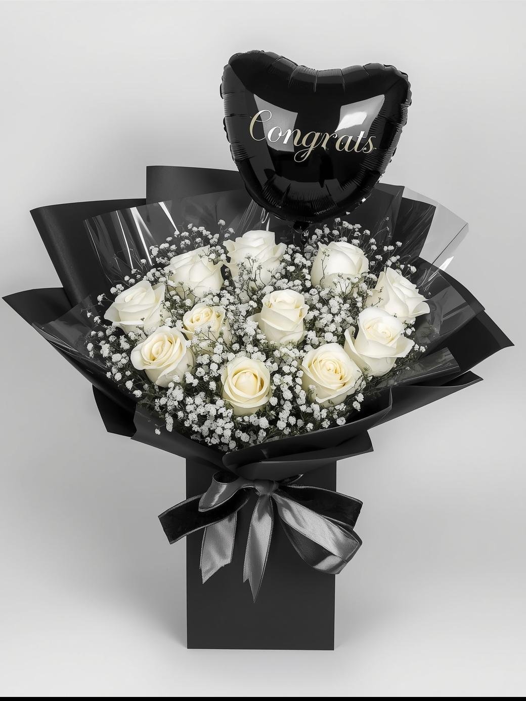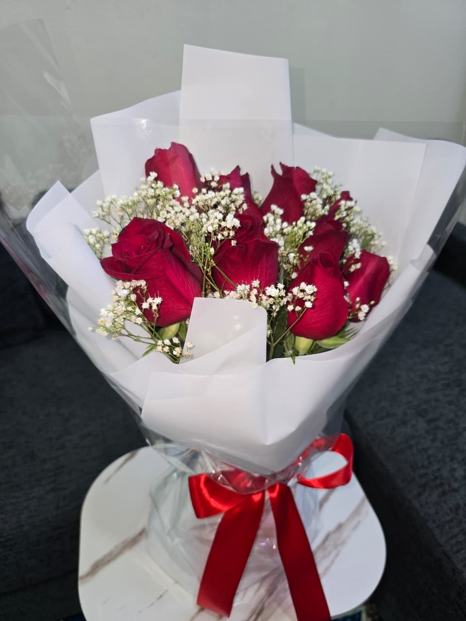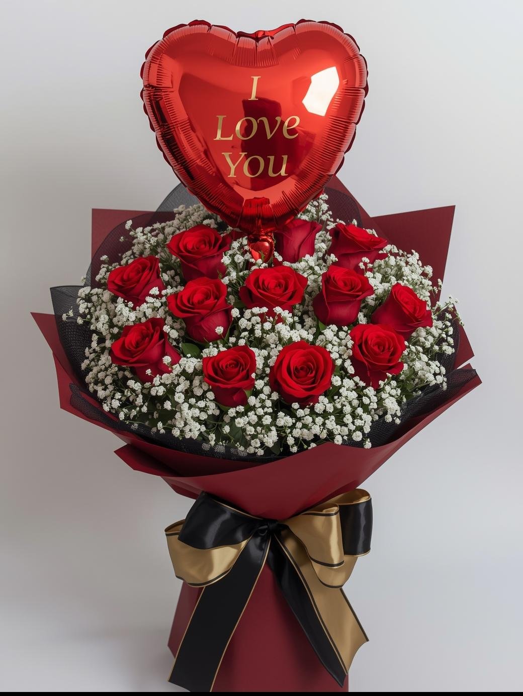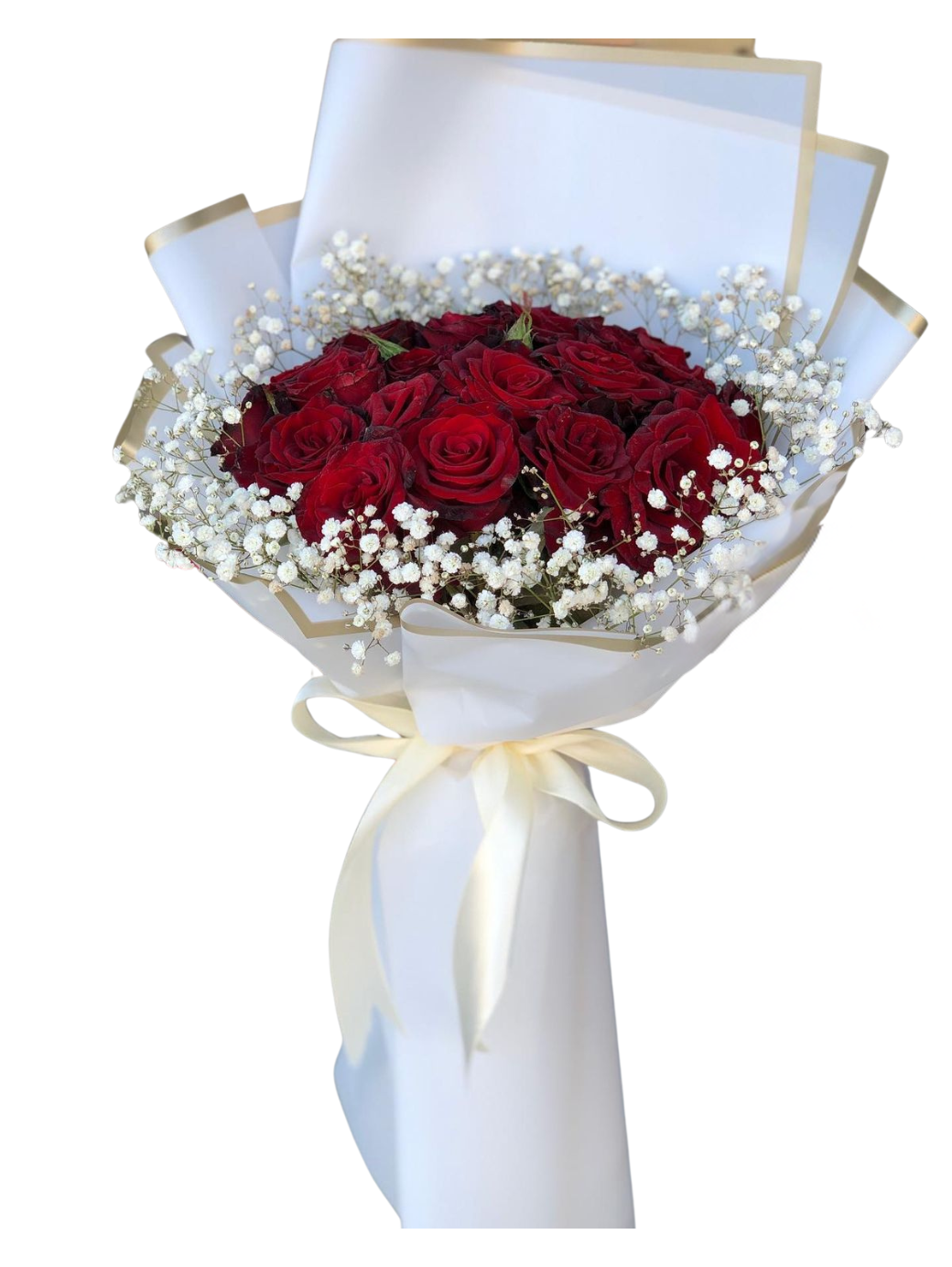 Elegant Red Rose & Baby’s Breath Bouquet – Luxury Floral Arrangement
