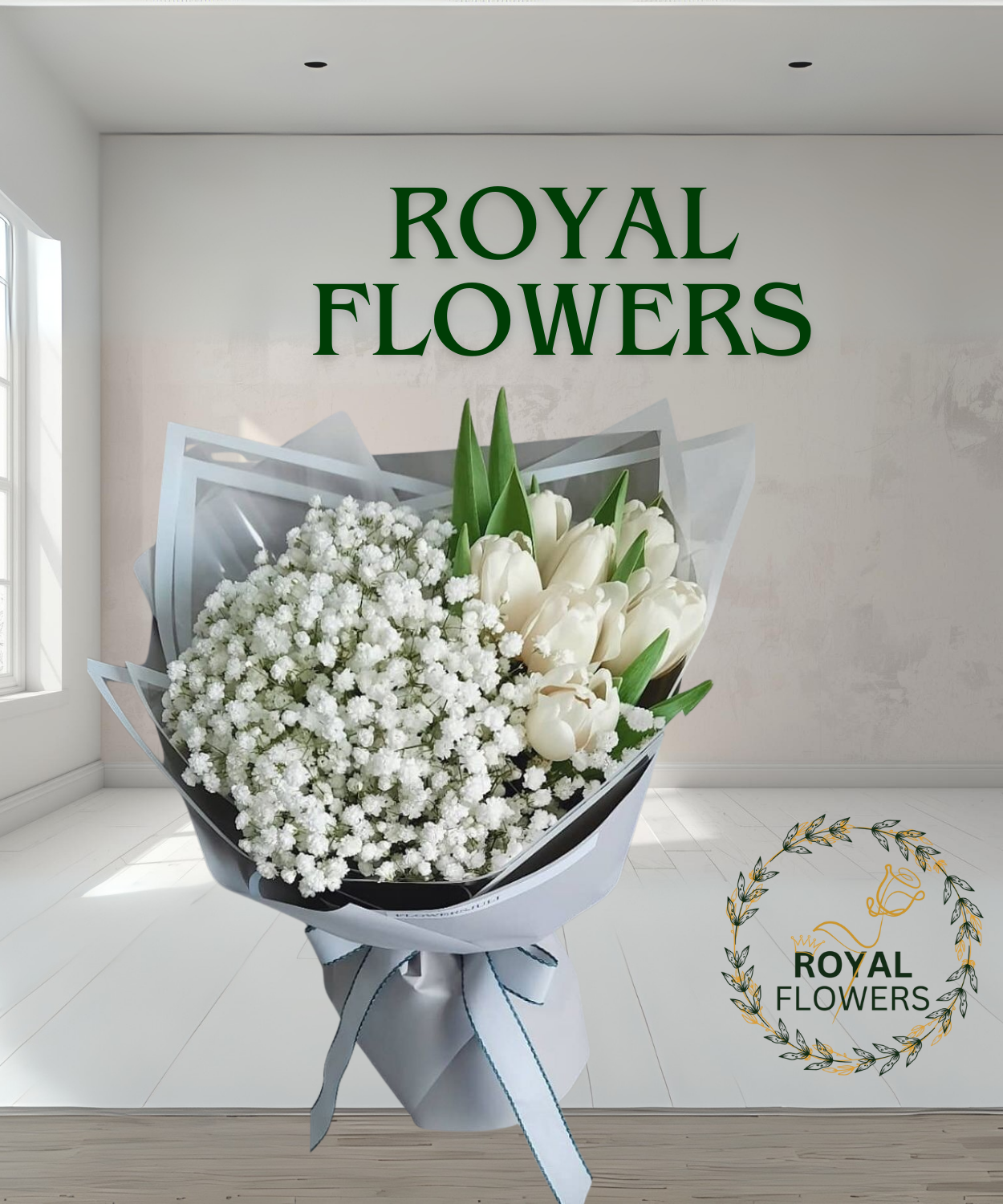 Elegant White Tulip & Baby’s Breath Bouquet – By Royal Flowers
