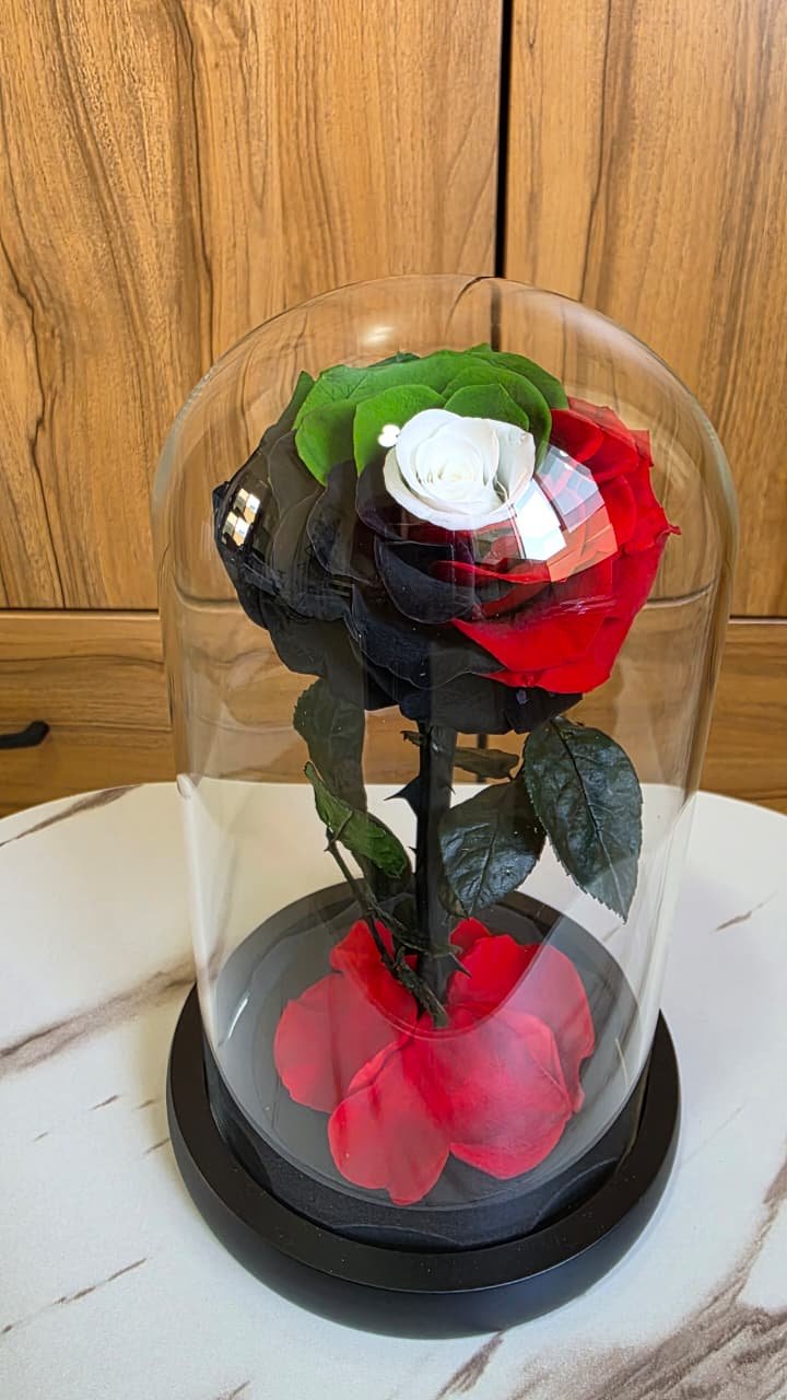UAE Flag Color Preserved Flower – Luxury Eternal Rose Flower Dome with LED Light